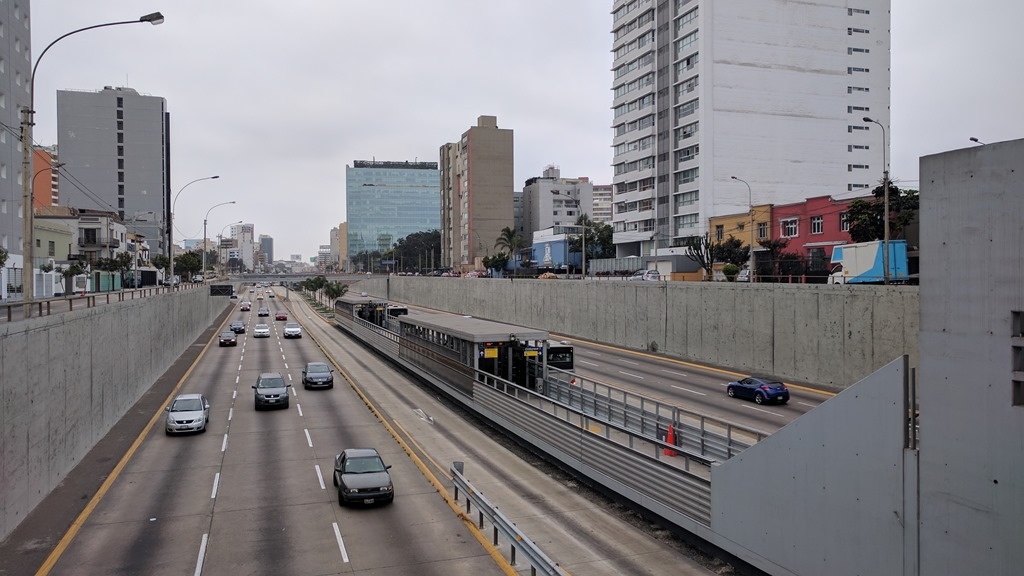 Our only full day in Lima was spent mostly in the old town. Lima has a Metro system, but it's not underground: it's based on buses that run on the standard road network, although with dedicated lanes and special stations that are in the middle of the freeways… an interesting and pragmatic design.
