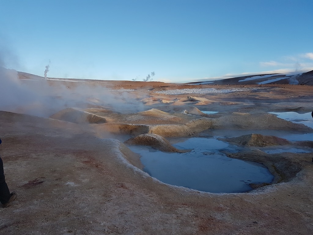 Our accommodation for the night – this time in Huayllajara, at 4,600m – was even more basic than the first night: still no heating, but this time we also had to manage without much electricity (once the generator was off) or any hot water. We then had to wake up at 4:30am to get to the Sol de Mañana, a geothermal field at 4,900m (our highest altitude yet), in time for the sunrise. This was a bit like a mini Yellowstone, but with fewer barriers to stop people from hurting themselves. I'll leave it up to the reader to decide whether this is a good thing or not (I'm still unsure, myself).