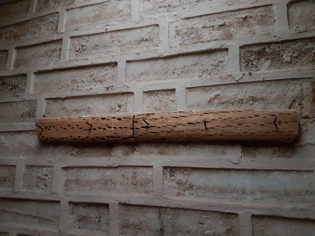 Leaving the salt flats, we headed on dust roads to San Juan, where we were staying for the night. We stayed at the Hostal de Sal los Lipez, built from blocks of salt. It wasn't heated, but it did have hot water. We had a very nice time there, in fact. It's very cool that they used local materials for pretty much everything. Here's a view of the wall made from salt bricks with a coat rack made from cactus wood: