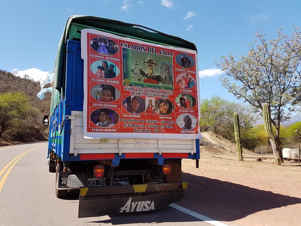 On our first trip outwards from Salta, heading north to the Quebrada Humahuaca – we were curious to see a group of people walking south towards the city. They had backup vehicles and even a police escort, but we didn't think more of it than that. On the way back down we saw the same group, much further along, as well as other groups of pilgrims on bicycles.