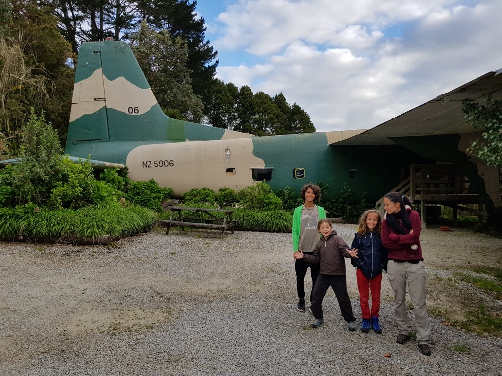 We had a few options for parking our motorhome in Waitomo, and went with a cheap one: the very handy app, CamperMate, pointed us to Woodlyn Park, which allows self-contained motorhomes to park for just $10 NZD. The grounds are pretty neat: there are motel rooms inside an old plane, an old boat and even a few hobbit holes!