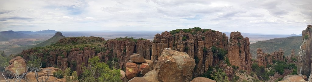 The next morning we woke up and got ready to head off. The campground had a local population of vervet monkeys, so it was very important not to leave food lying around. Here's a quick panorama that was mis-stitched by Google Photos… it's a nice image, nonetheless.