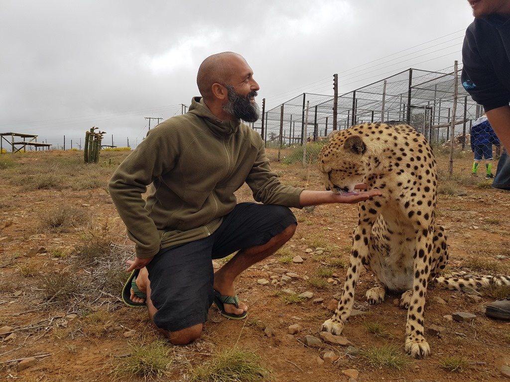 After a brief introduction by the tourguide, the cheetah – named Khaki – proceeded to lick my forearm for a good minute or two. It had a really rough tongue and gave a deep purr throughout. A somewhat surreal – but completely brilliant – experience.