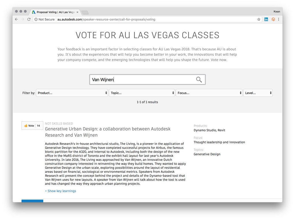 To vote for this class, search for "Getting started with Generative Design for AEC".