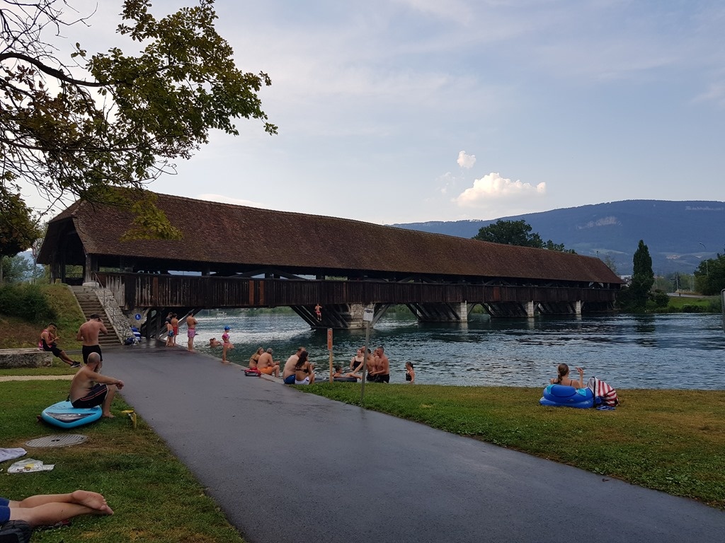 Cycling along the Aare sometimes meant a longer (when winding) or a slower (when the paths weren't great) journey than it might have been, but it often meant we had shade and we were never far from being able to jump in to cool off.