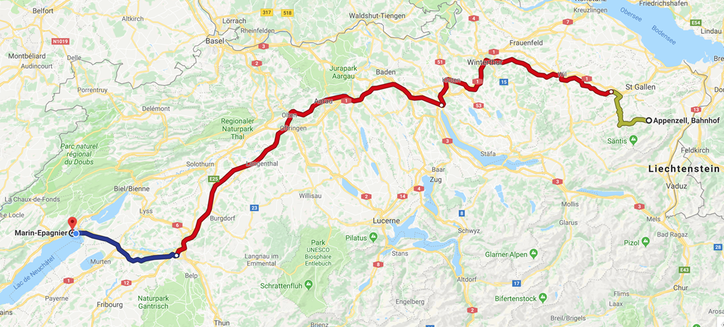The next day we headed up to Nidau – just south of Bienne – to find the Aare. The Aare is one of the most important rivers in Switzerland and heads down from the Bernese Oberland to the Lac de Bienne and then flows from there down to where it meets the Rhine. Our plan was to follow it as far as we could before splitting off towards Appenzell.