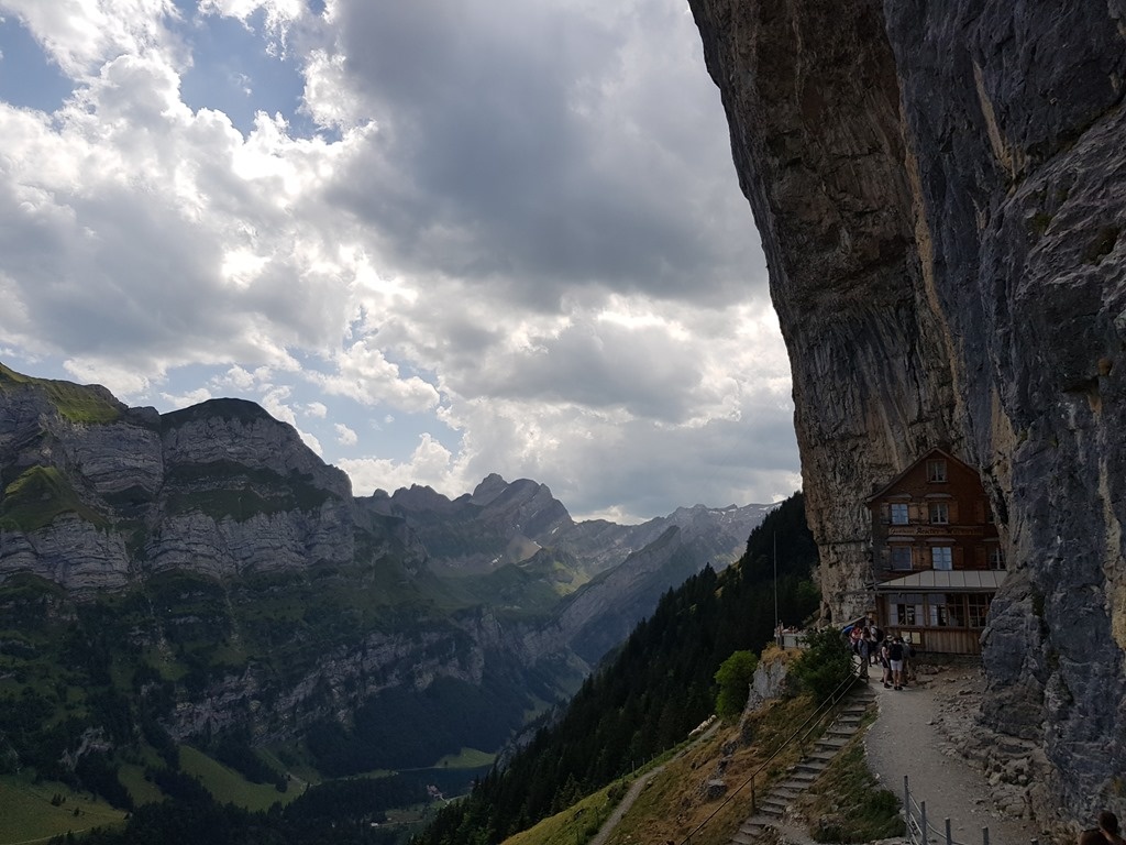 We stopped for a drink at the unbelievably picturesque Berggasthaus Aescher-Wildkirchli.