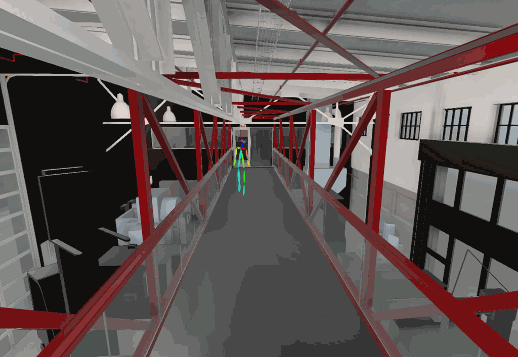 We've had more success on another feature I've been working on, which is to bring skeleton data into the viewer. We have CCTV cameras that are installed on either end of the bridge in Pier 9, and Liviu and Pan from the Toronto team have been working hard to extract skeleton information from the camera feed and map it into a 3D space.