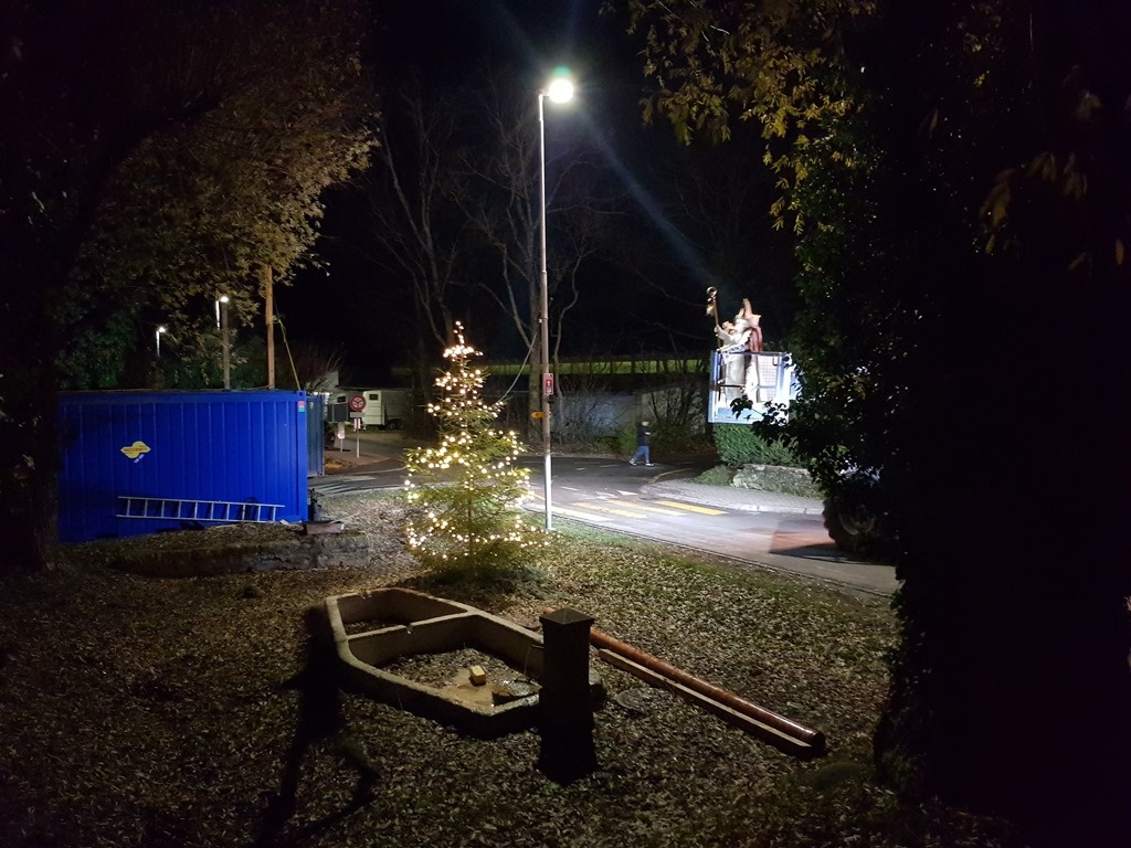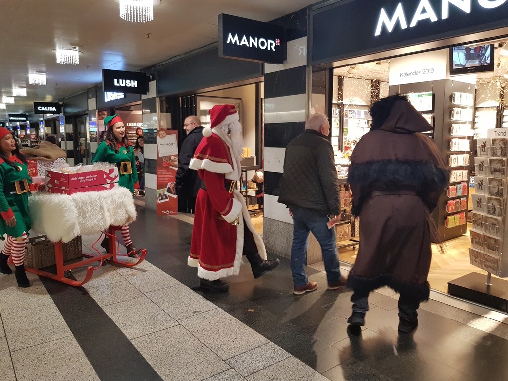 I had to take 5 buses and trains to get there – a local bus to Uster, a local train to Zurich, an intercity train to Bienne, a local train to Le Landeron and finally a local bus to Wavre. But I got there in time. I even spotted St. Nick a bit early as I passed through Zurich train station.