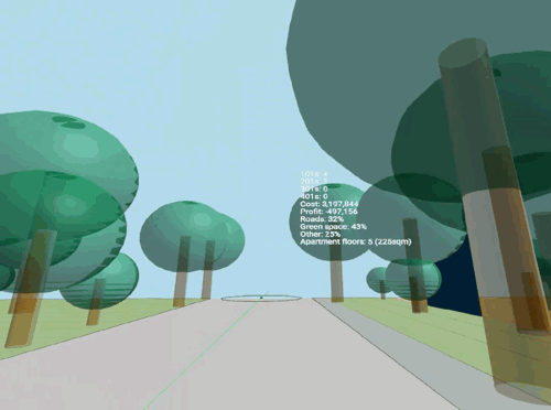 Let's take a quick look at the parabolic navigation with a simple camera-fixed HUD showing a few metrics from the Generative Design process. Here's a static image, to give some sense of the approximate quality: