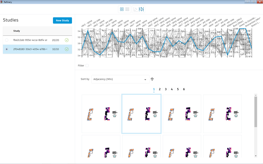 And here it is with the parallel coordinates view… as you can see, it's quite crowded given the number of input parameters.