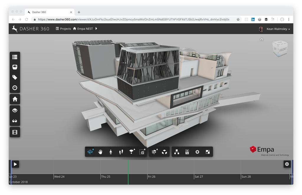It seems as though we won't have a physical exhibit at AU London, after all, but we're definitely working towards having the NEST model available via Dasher360.com during a similar timeframe for people to explore. Based on our meeting on Tuesday, in the near-term we're planning to integrate building comfort data (temperature, humidity and CO2) as well as information on the state of the electrochromatic glass and window blinds available for the 1st floor and the DFAB House, in addition to end-to-end data on the energy being produced (via PV panels), stored (in battery systems) and consumed in the NEST building.