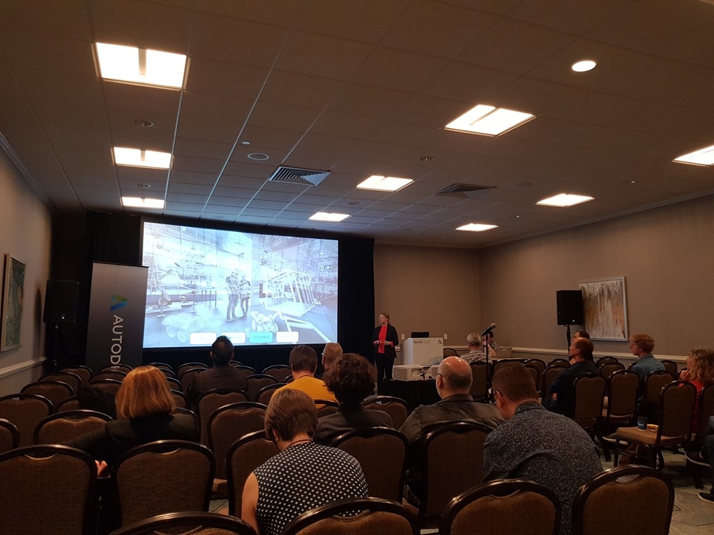I had the pleasure of chaperoning Sharif for the rest of the morning: we went to a couple of sessions by colleagues in Autodesk Research, as they seemed the most aligned with Sharif's interests. The first was by my Toronto-based colleagues, Hali Larsen and Fraser Anderson, and discussed a modular research framework for construction projects called ICE (Intelligent Construction Experience).