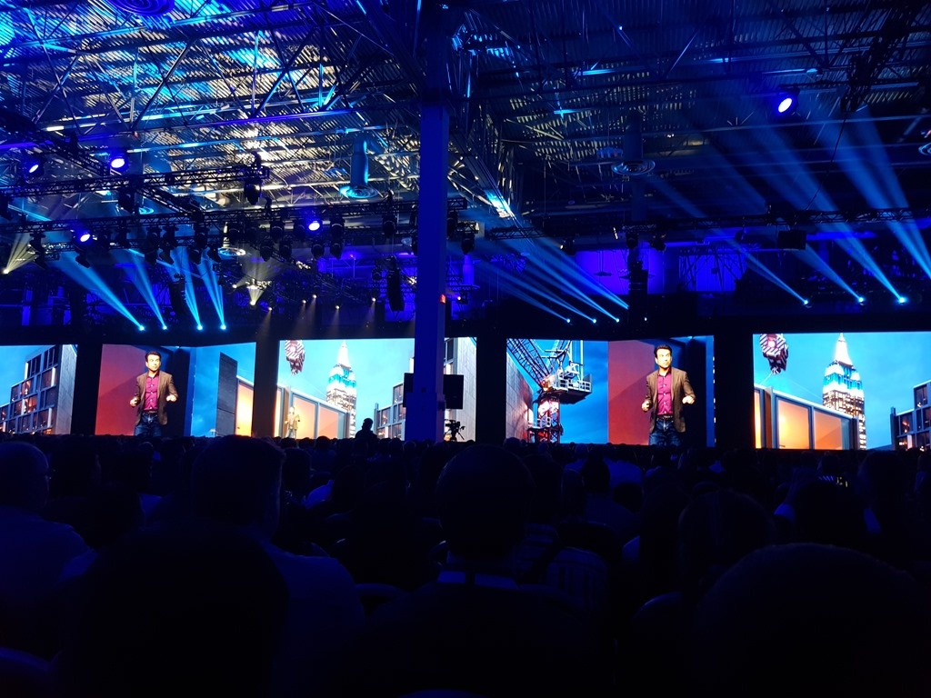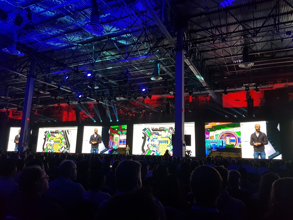 The day's main event was clearly the AU mainstage. Andrew Anagnost, Autodesk's CEO, presented a number of mind-expanding projects, including this Marriott hotel in New York that's been built offsite with its modules assembled into a 26-storey building.