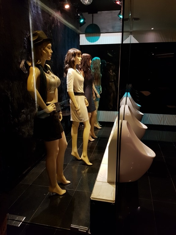 The decor in the restrooms is provocative, especially by local standards. People often get performance