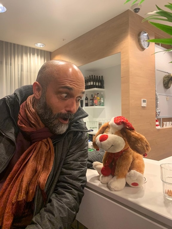 As the festive season is upon us, I've decided to start each post with a seasonal photo. Here's me with a reindeer/dog (reindog?) in the lobby of the hotel we stayed at in Hoofddorp.
