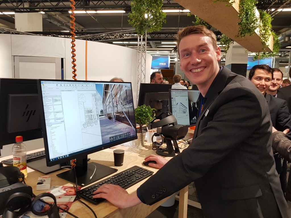 Digital twins were everywhere. We stopped by – this time with Claus Mueller – a stand being manned by former Autodesk colleague Matthias Liechti.