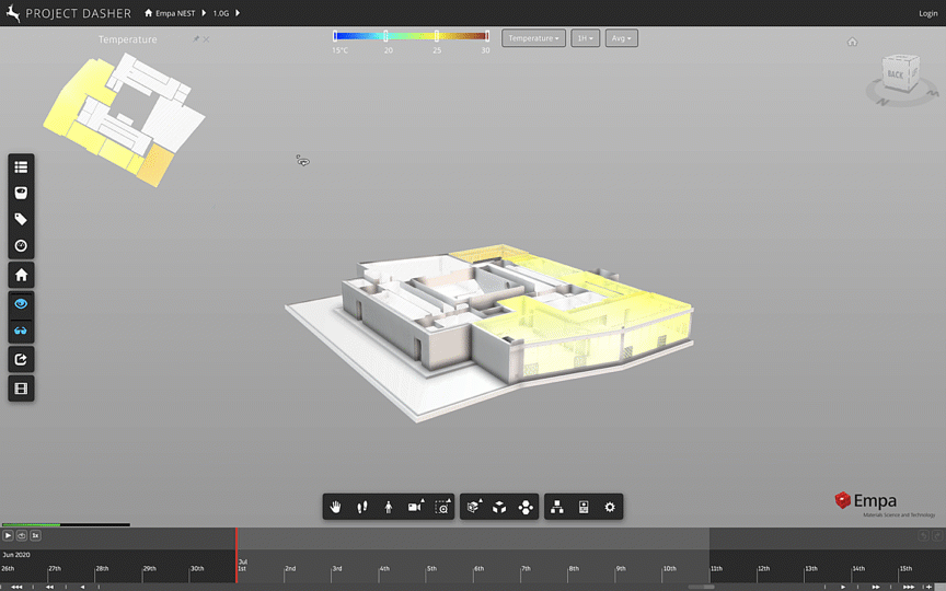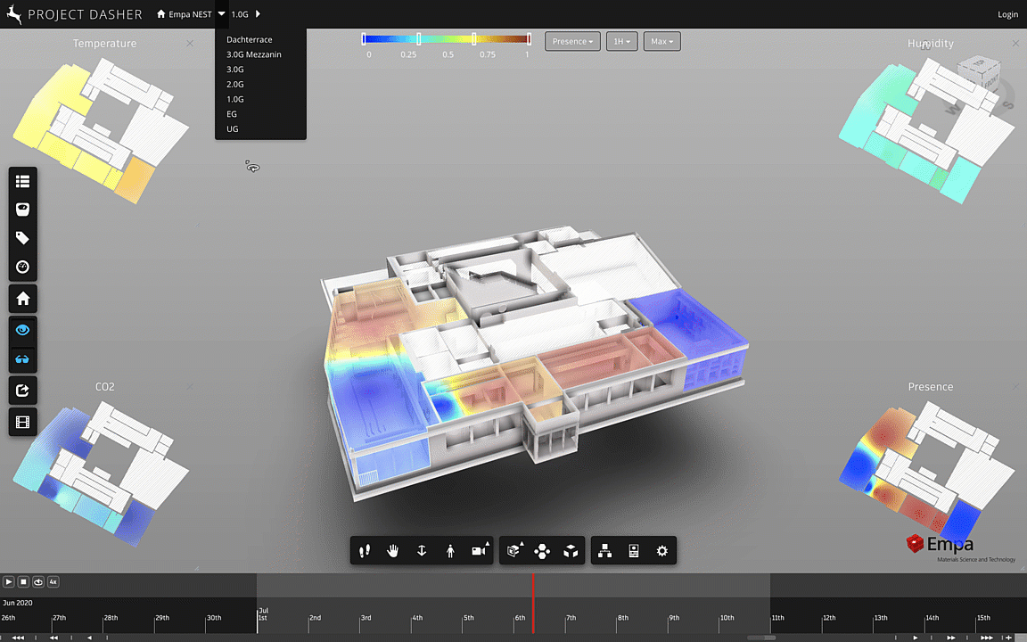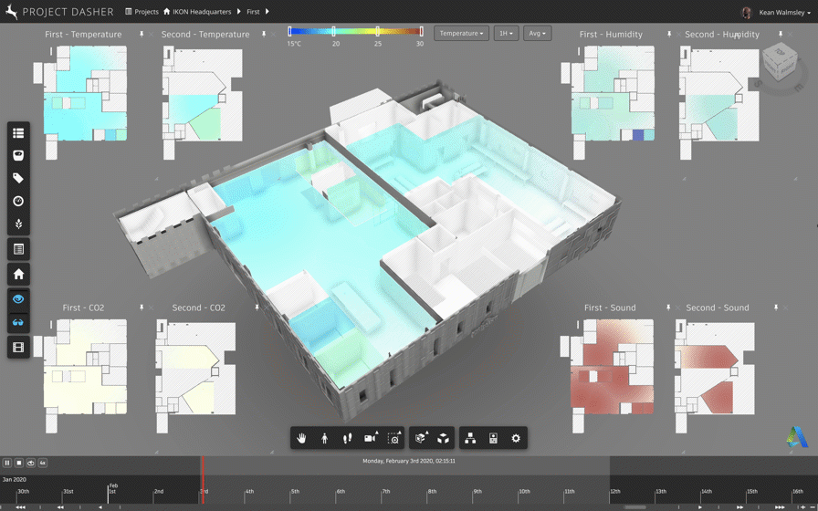 In the meantime, here's an animation showing pinned sensor panels for data from Kingspan's IKON building, as this has a variety of active sensors across multiple floors and shows off the capability nicely: