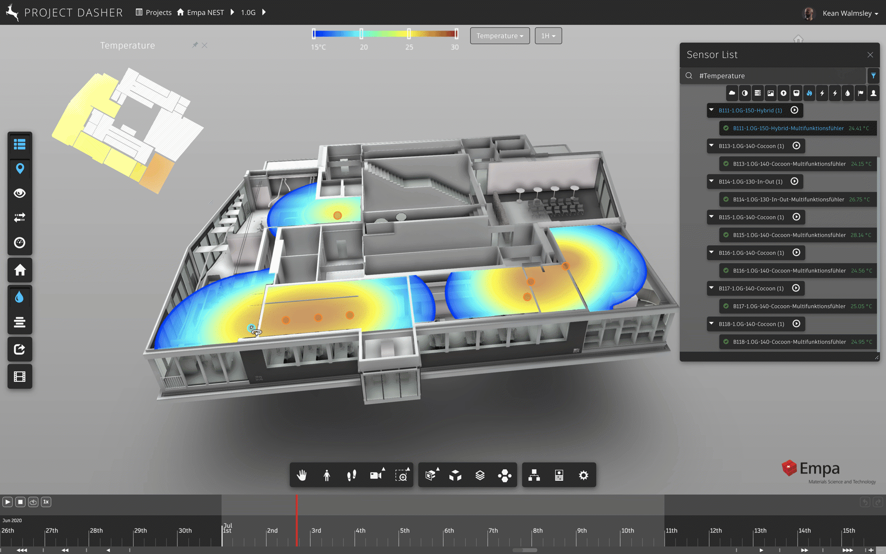 In prior versions the sensors in a space weren't being filtered properly when deciding whether they should contribute to the heatmap. The issue was this: if a room had sensors of the type being displayed, then all the room's sensors would be added to the list to display. This wasn't an issue for the Hyperion reference application, interestingly, as they only have sensors with multiple sensor feeds (what we call equipment sensors in Dasher-speak). But in Dasher we often have a varied set of sensors in a room, and they should not all be contributing data to planar heatmaps. Anyway, this was another important fix for us, as otherwise the heatmaps were rather saturated and – most importantly – displayed the data incorrectly.