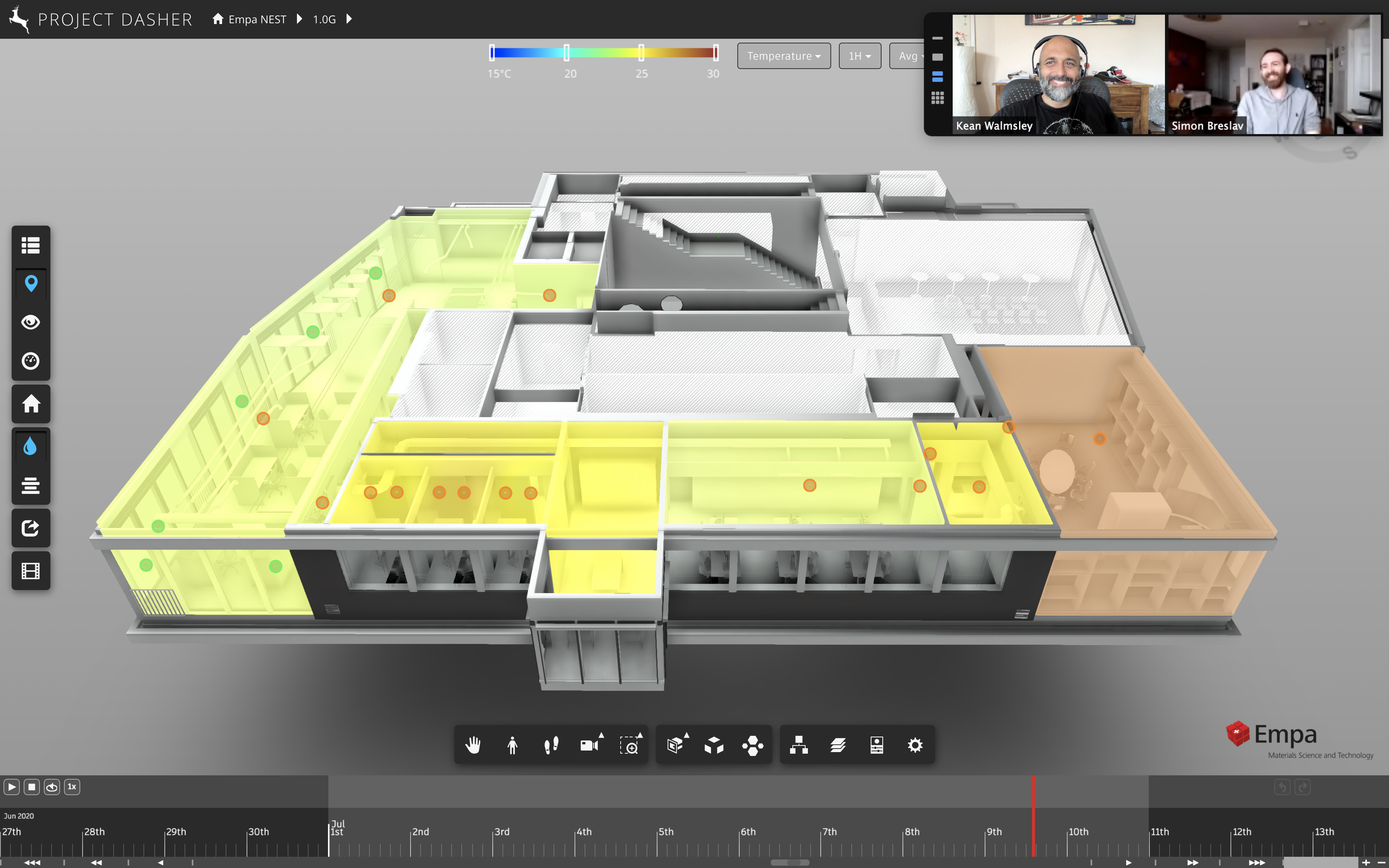 I know that sounds like a long list of people, but bear in mind that very few have been involved in Dasher all the way through: I only joined the project when we started its transition to using Forge (it previously had a desktop-based client) in 2016, for instance. And there are a lot of moving pieces that contribute to the project: back when it started there were no easy-to-adopt, cloud-based, time-series databases nor any off-the-shelf sensor kits that could feed them. A lot of work was needed to make the project happen, including a major investment in tools to explore sensor data using different levels of detail (whether by implementing back-end "roll-ups" or consuming them via advanced shaders and responsive graphing components). And that's not even talking about the adjacent work on computer-vision systems to extract skeleton data from camera feeds.