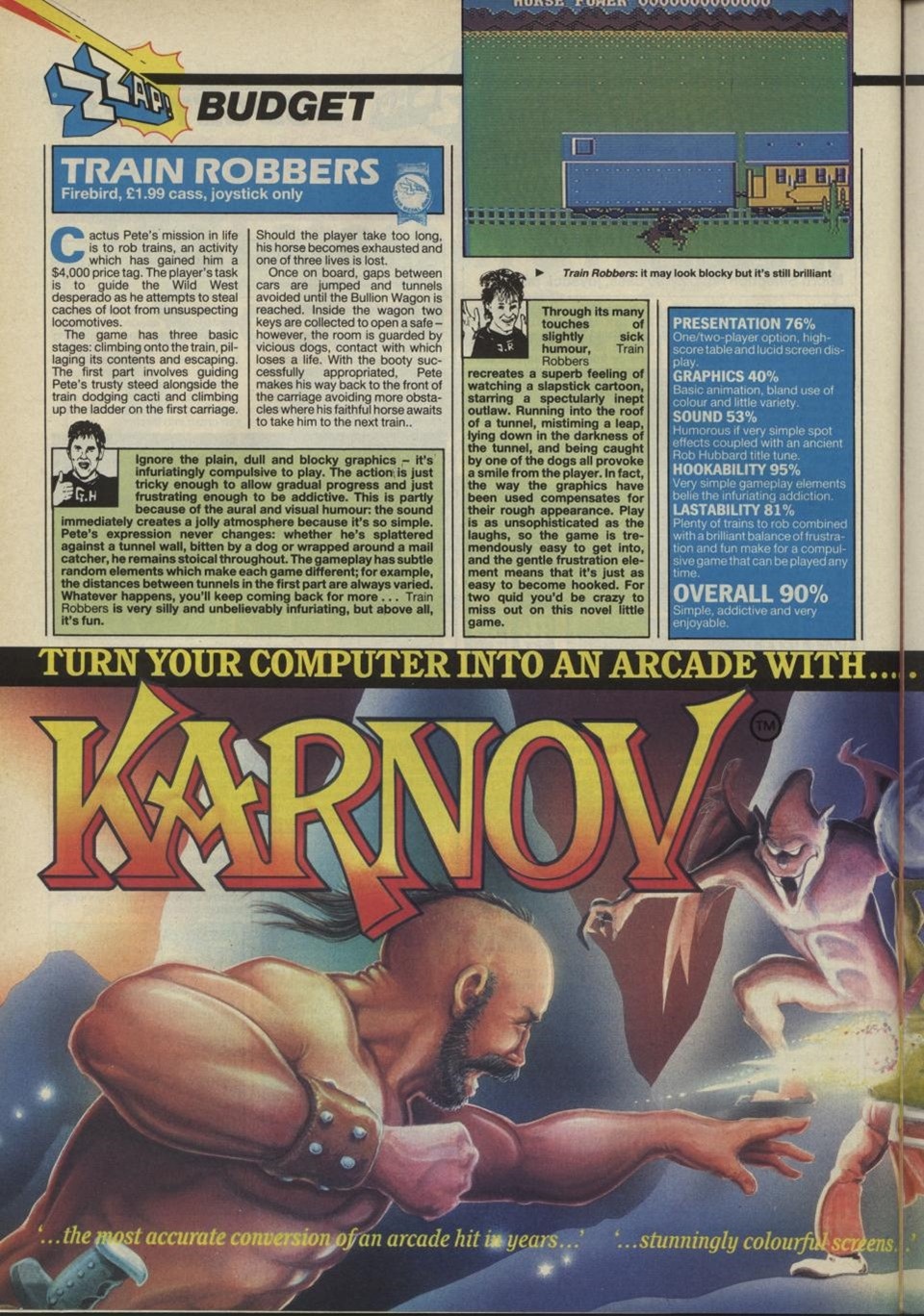 Here's a review of Train Robbers from issue 38 of Zzap!64 magazine: