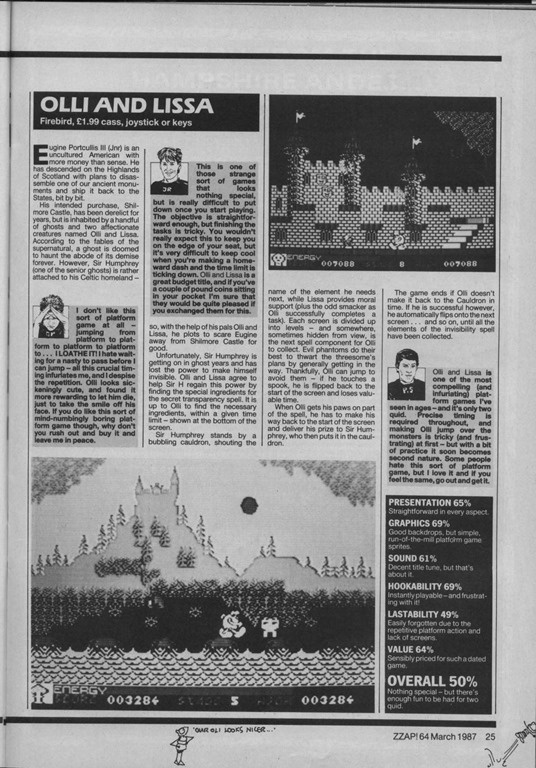 Here are reviews for Olli & Lissa and The Equalizer and Agent Orange from Zzap! 64 magazine: