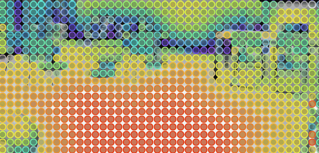 Then, whenever a sprite is hovered over, we take the HEX colour assigned to it (I tend to store strings for each one rather than having the overhead of storing a THREE.Vector3), convert it to a THREE.Vector3() containing R, G and B values, then check the Euclidean distance between it and each of the colour stops. Here's a function that does this (should be obvious what colorToRGB() and indexOfSmallest() do… the former is mentioned above while the latter returns the index of the smallest item in an array):