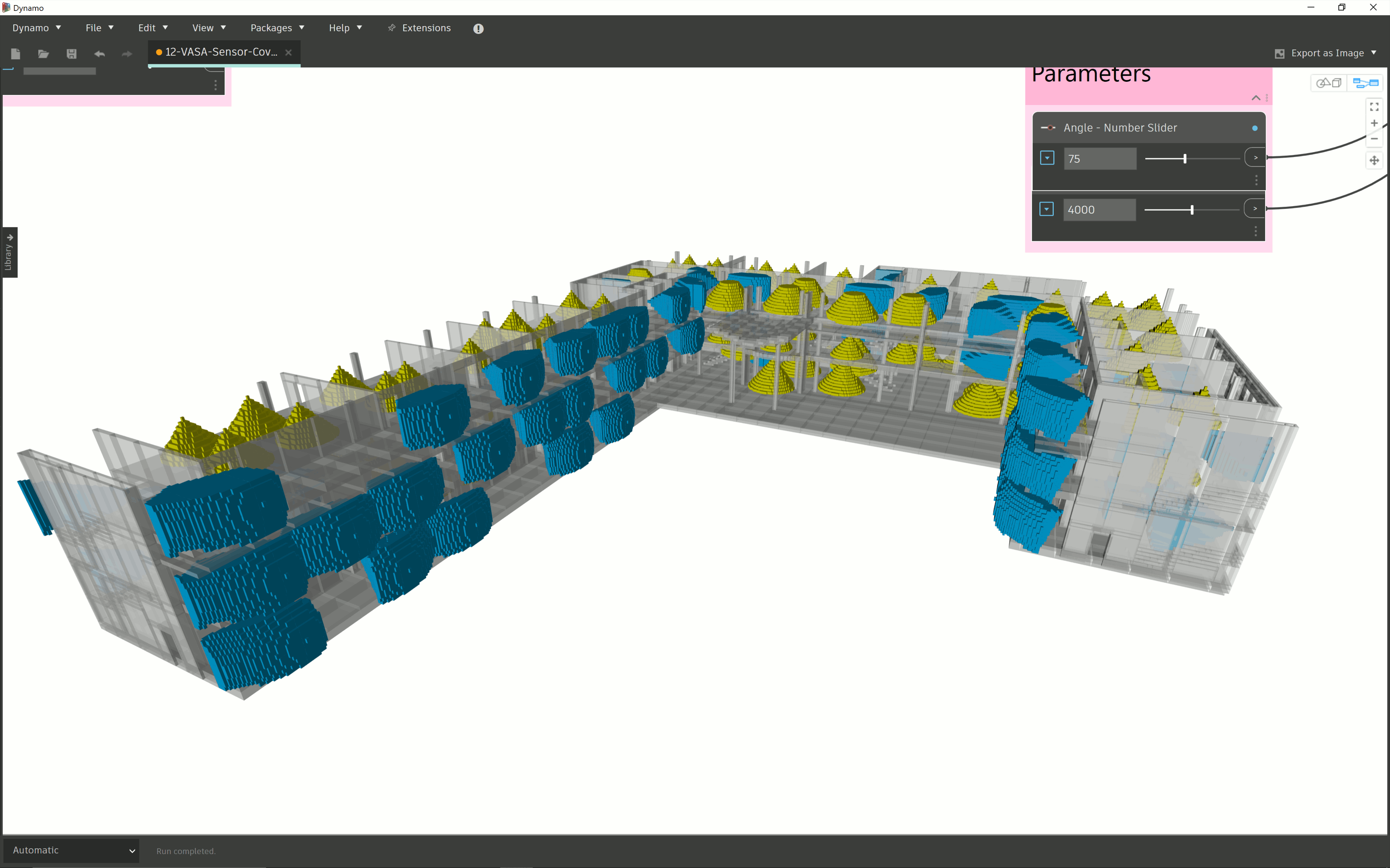 Last week I mentioned the release of VASA 0.2.0, which includes some new nodes and samples that raise some really interesting possibilities. I couldn't help but come back to the "sensor coverage" sample (named 12-VASA-Sensor-Coverage.dyn), in particular, as I can see so many possibilities for its use.