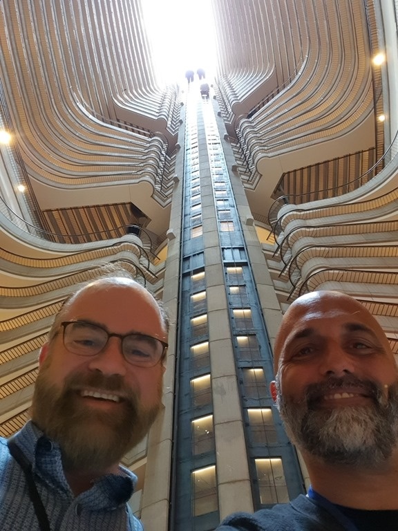 I'd been seeing some interesting characters – who clearly weren't here to TechX – in the lobby of the Hilton. Shaan Hurley and I decided to head across to the Mariott – conveniently connected to the Hilton by a sky bridge – to check out its impressive architecture and see what was going on there.