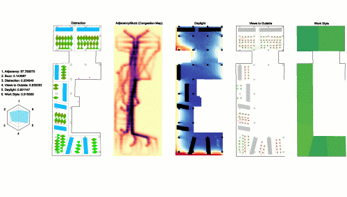 - When calculating adjacency we had to measure the average distance between people's desks and key features such as amenities and elevators.