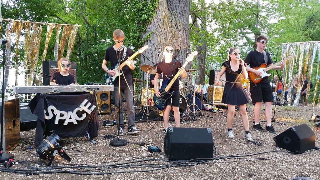 All our kids take lessons at our local rock school, BBM74. The concept of this school is brilliant: they have lessons and workshops throughout the school year which culminate in a series of concerts in May and June. They learn everything about performing live, from organising transport to lugging equipment and connecting lights and amplifiers. They have learned so much!