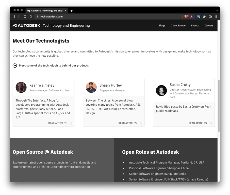 The site will be a great resource for people interested in learning about the technical work performed by our employees and will also be a way for Autodesk engineering talent to connect with the outside world. I'm really looking forward to seeing what our development teams share through this new mechanism.