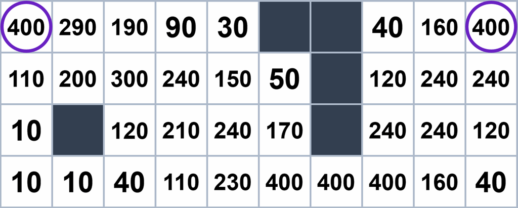 I won't go into the specifics of how path counting works – Rhys's article already does that extremely well – but I'll summarise the problem and its solution, quickly: using traditional pathfinding algorithms such as A* or Dijkstra on a simple grid can lead to shortest paths being found that are "ugly". They go from A to B with the same cost as other shortest paths, yet they seem unnatural.