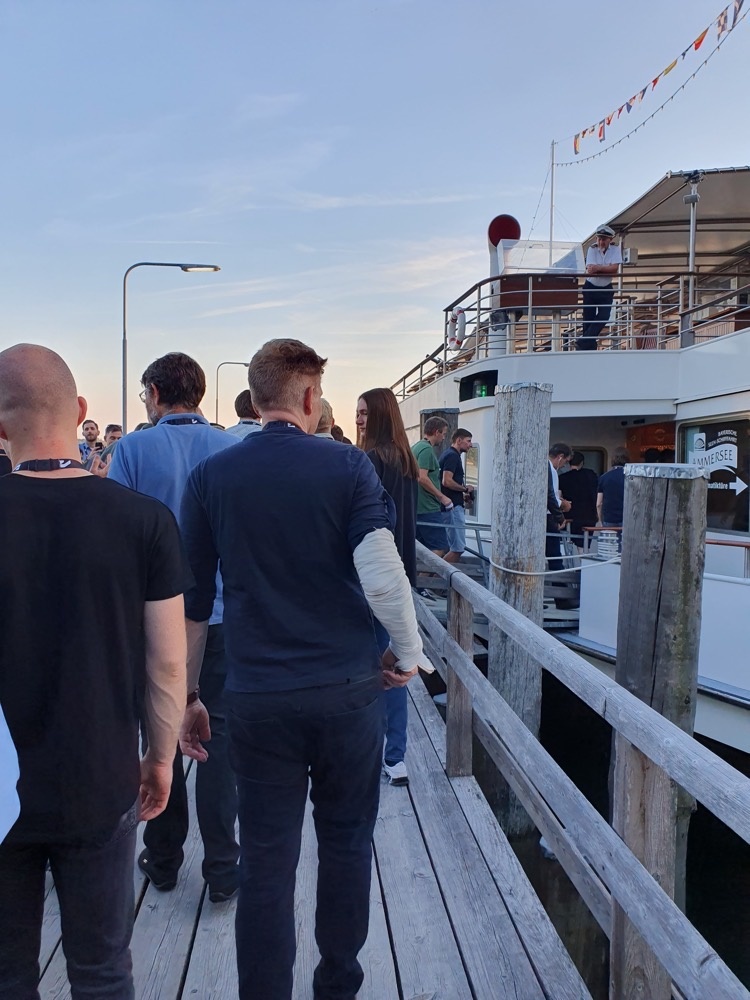 As the buses were all there a little early, we did have to wait to get onto the boat that had been rented for the evening. People were very patient and mostly seemed happy enough to have the time to chat. At 7pm we were allowed to board: