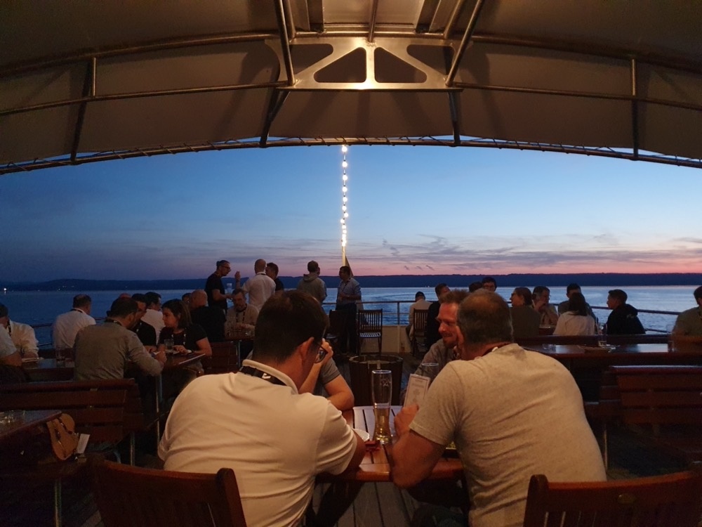 With the learning out of the way, it was time for the evening event. I headed across with Peter Schlipf to help make sure things were ready for the buses of participants to arrive. It turned out that because the parking was so tricky - it was the last weekend of the summer holidays, so lots of people were making the most of the last few rays of sun - we ended up being beaten there by a few of the buses. Ah well.