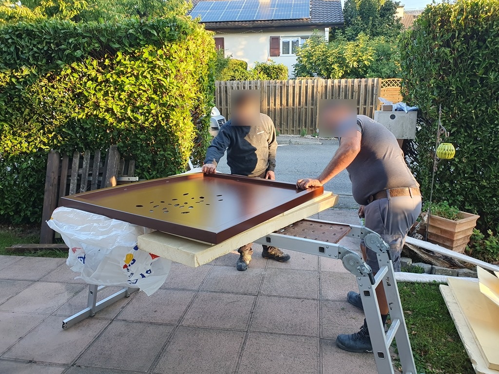 The installers took lots of pictures of the finished product: it was so nice to see how proud they were of their (and – to some degree – my!) work. With the morning sun shining through the design, it's really quite lovely.