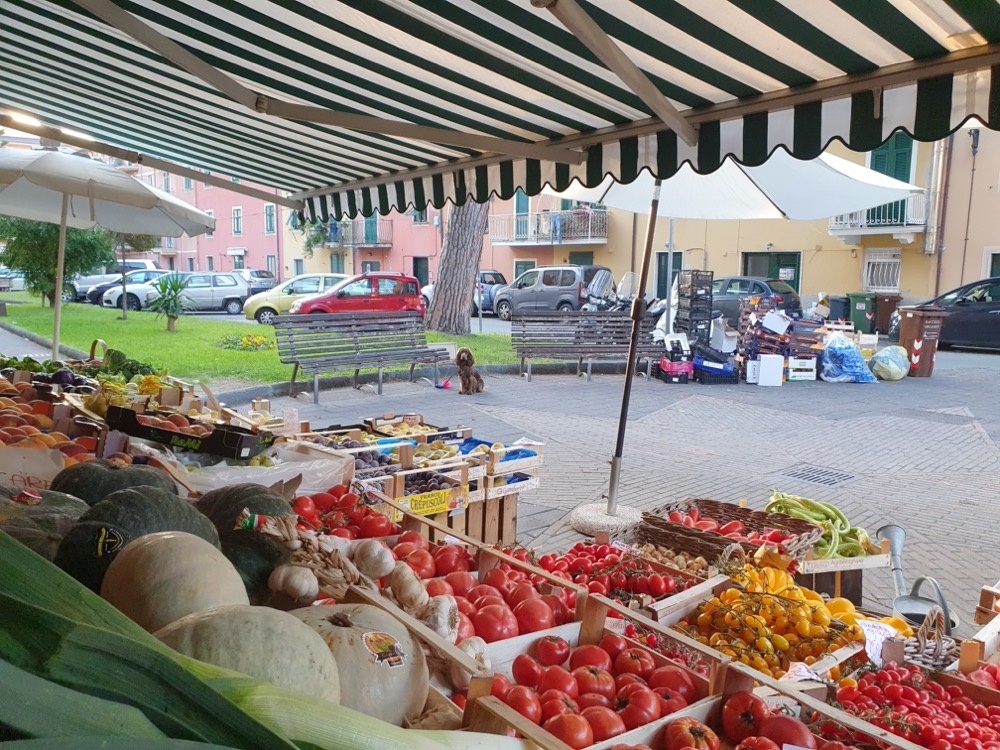On Monday the town of Riva Trigoso came to life. On the way back from our morning walk with Daisy, we stopped to get breakfast at a local market.