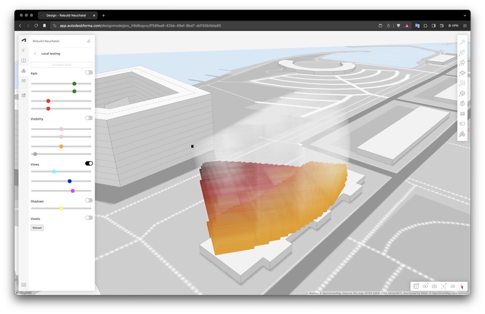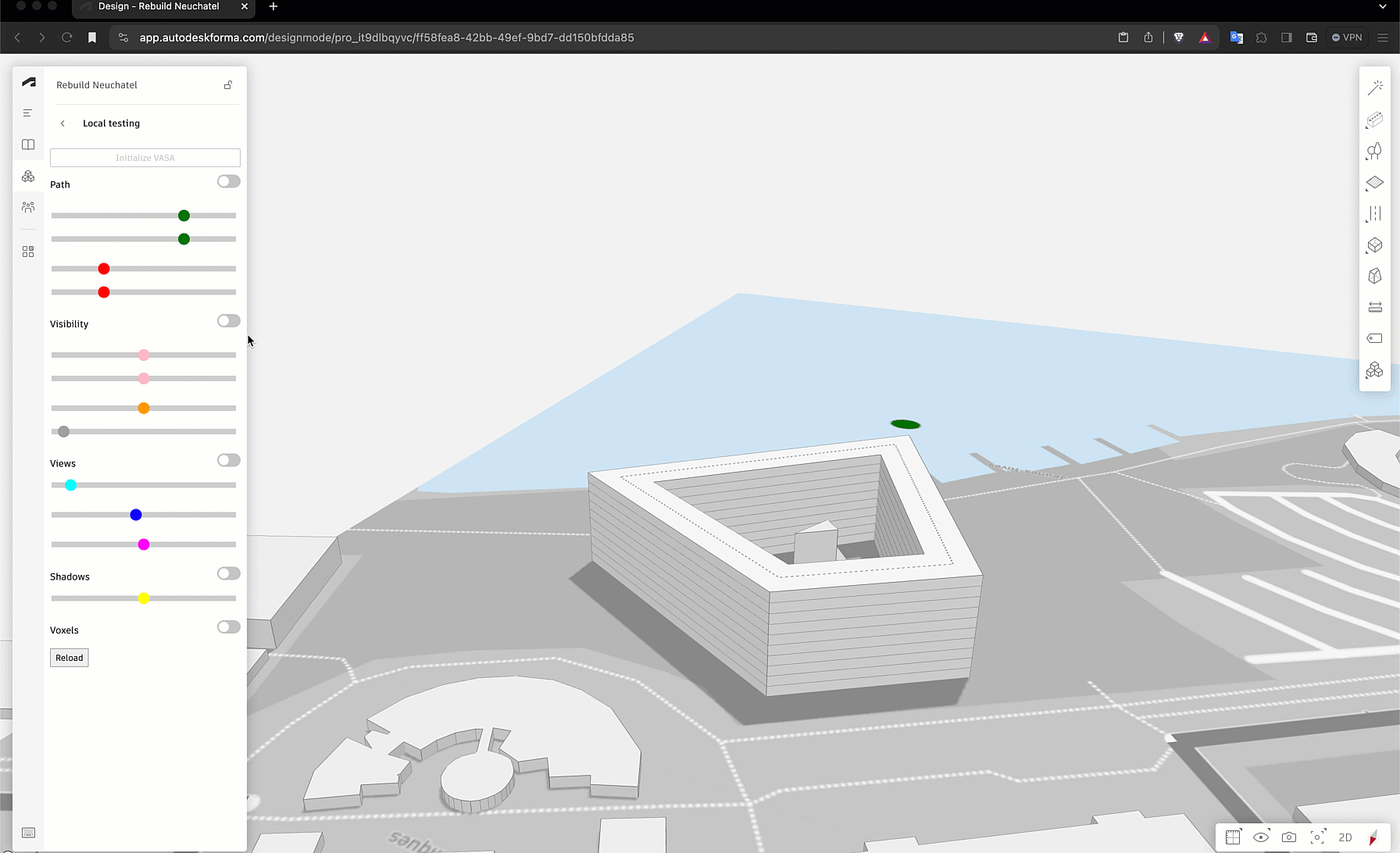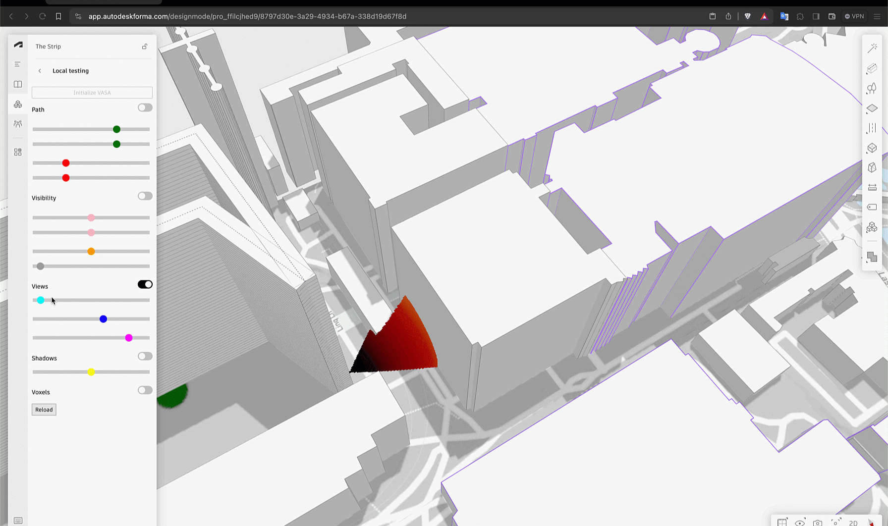 A very quick update on my holiday "fun". After a bit of work I managed to combine two VASA voxel models - one for the visibility cone and one for its intersection with Forma's site surroundings, something we saw last time - into a single Forma mesh.