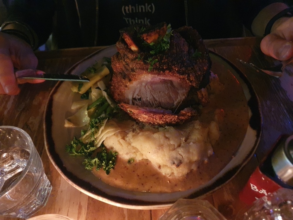 As my son's marks were looking really very good, we decided on a nice local restaurant with Norwegian specialities. He chose the slow-cooked pork knuckle, which was crispy on the outside and like butter on the inside. Apparently - I don't eat meat, so took his word for it.Pig knuckle