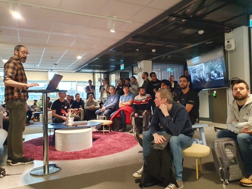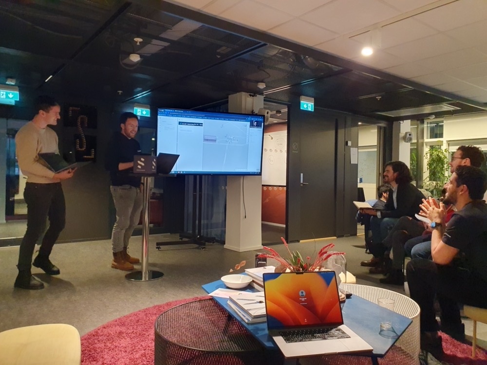 At 4pm it was time for the various teams to present. It was a very interesting session, as there was a really nice mix of "pure" Hackathon teams - made up of people coming together on the day - and companies who have sent their own teams to work on specific features they wanted to develop (more like our classic Accelerator model).