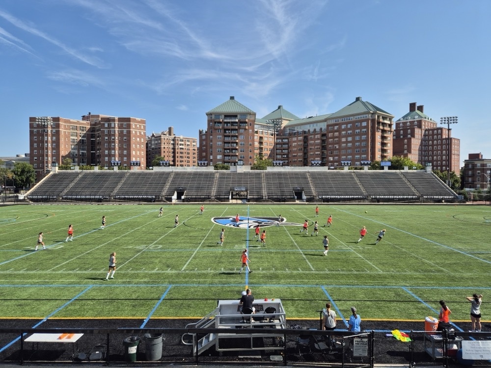 One of my favorite things on the campus is to climb to the top of the bleachers and watch whatever sports team is training.