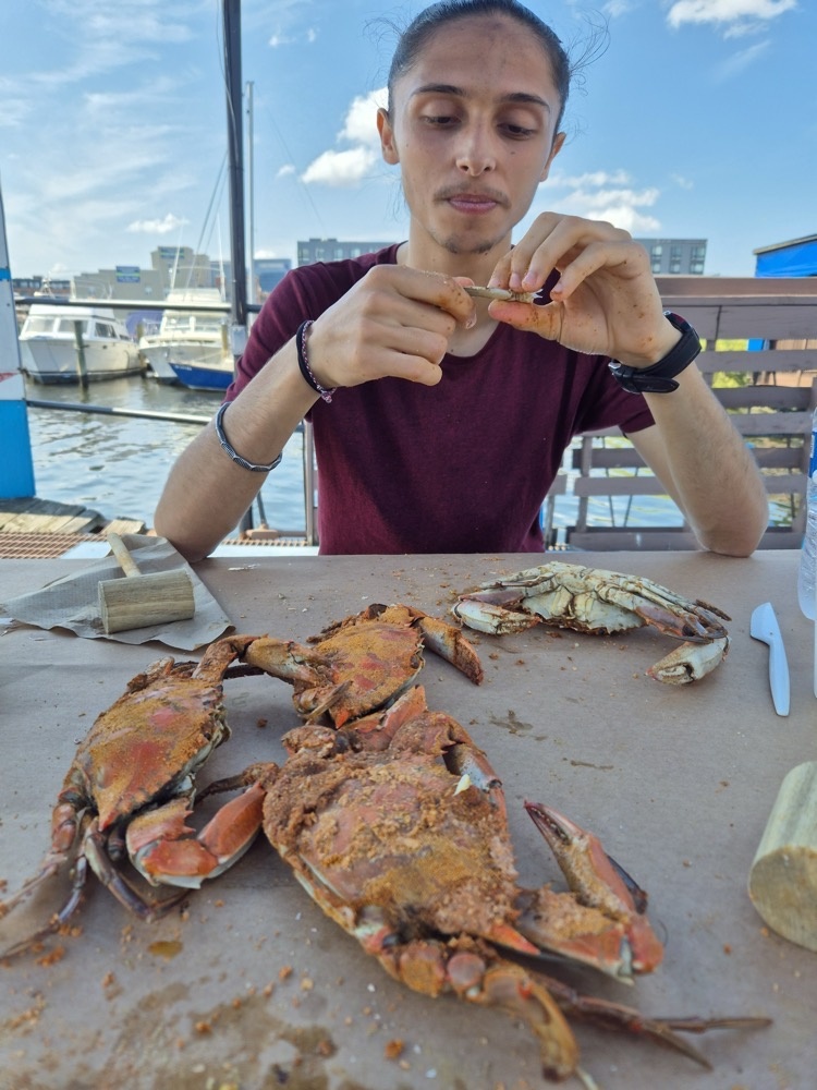 Despite his studies, he still needs to eat. We headed to Captain James' Crab Shack down by the harbour to eat a half dozen chili crabs for lunch. Yum.