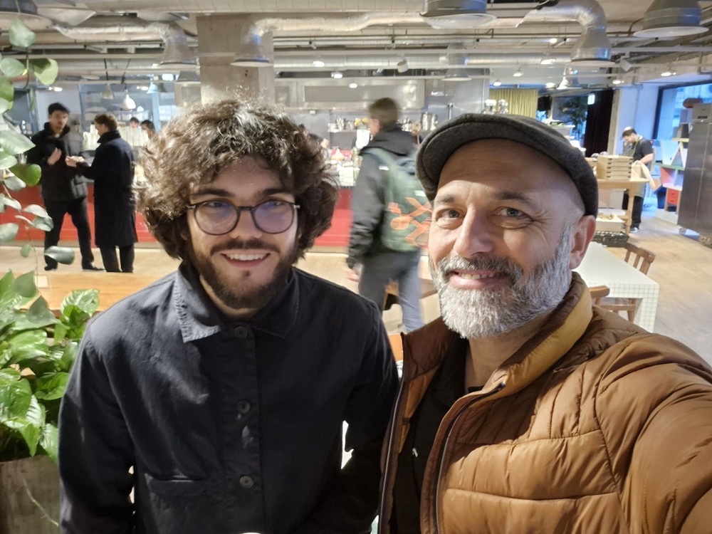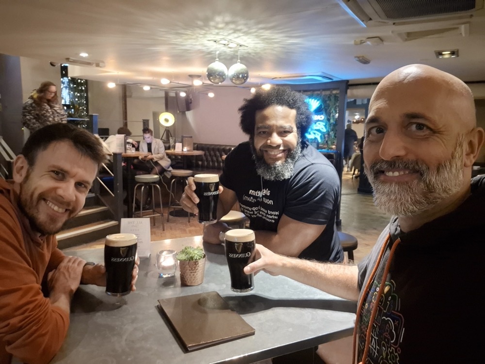 Monday morning was mostly spent catching up with folks in our London office. Here's Tomas and Marco with Tom, who lives in the UK. They've been a team for years but this was the first time they'd all met together, in-person. Remote work has become such the norm for us.Tomas, Marco and Tom