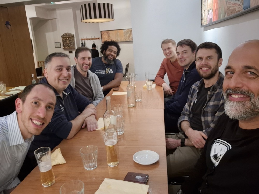 One of our catch-up meetings was with Hilmar and David, who work on a parallel research track. It's really valuable to sync up on respective progress from time-to-time, as it helps us assess synergies and potential economies of scale.Kean, Dagmara, Hilmar, Tomas and David