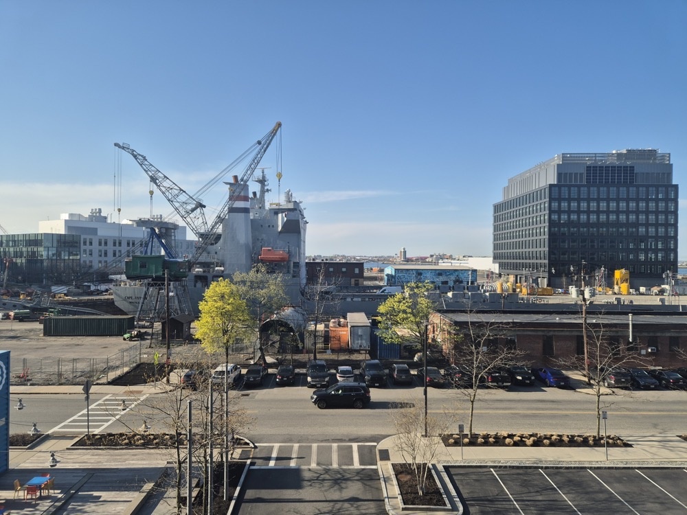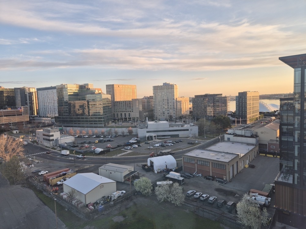 I'm staying at the Homewood Suites just along Drydock Avenue from the our Boston office. Here's the morning view from the 12th floor.