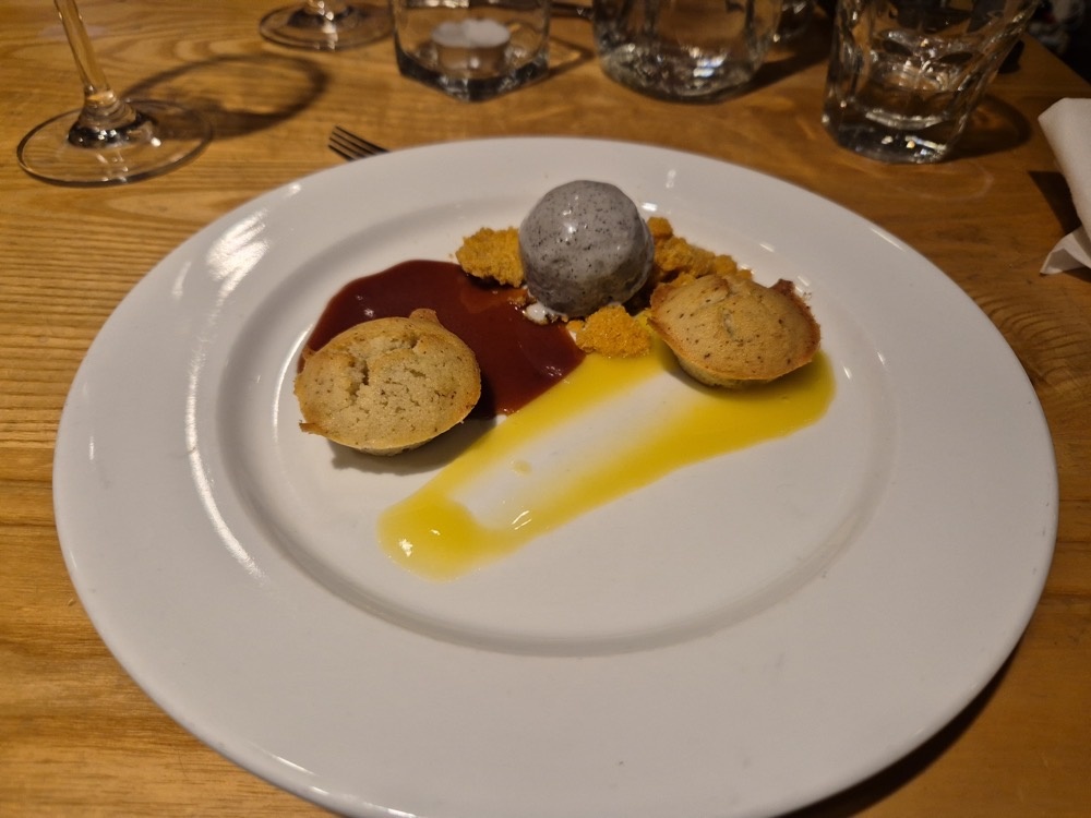 For dessert we finished off a brown butter financier with yuzu curd & gochujang cookie crumb.
