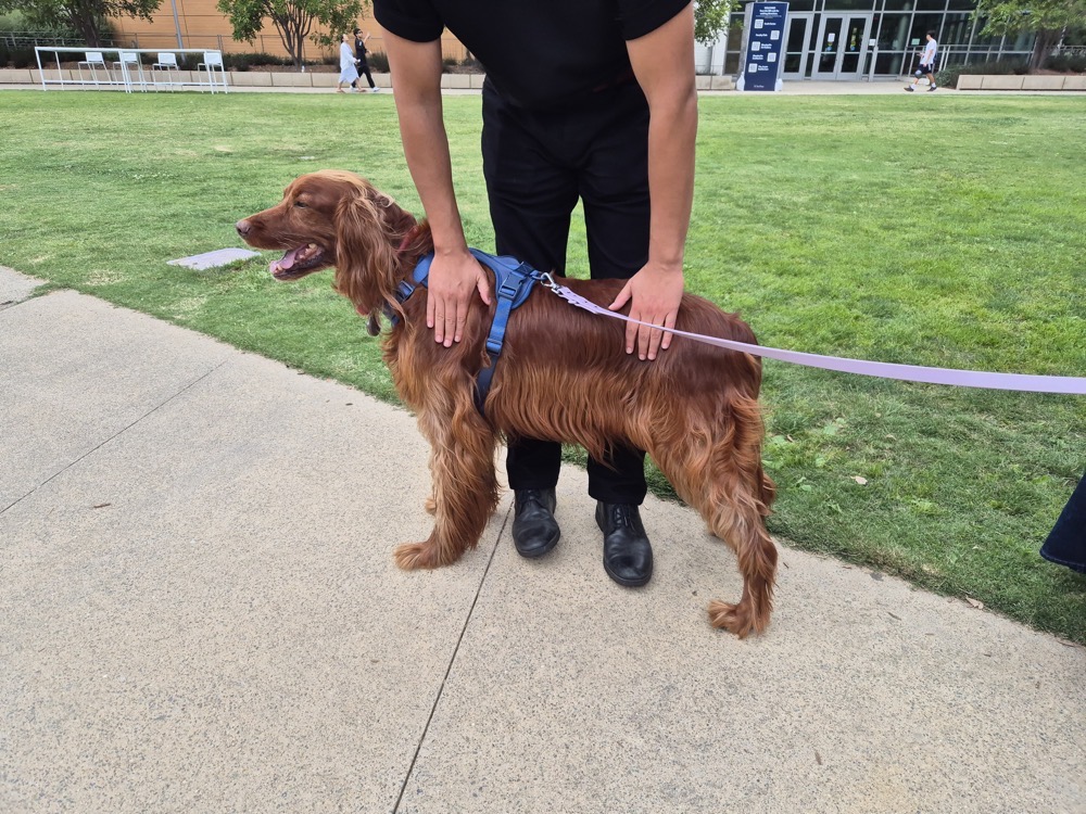 Outside the lecture hall - and the venue itself - I bumped into an Irish Setter with very similar coloring to my Daisy. Although at a very different scale.