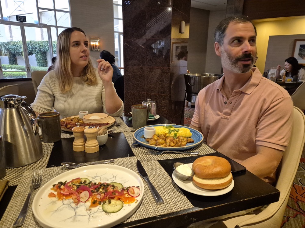 This was the first time I'd stopped for breakfast in the Hilton. This is what a $28 bagel looks like (not including the 5% cost of living surcharge, tax and service charge).