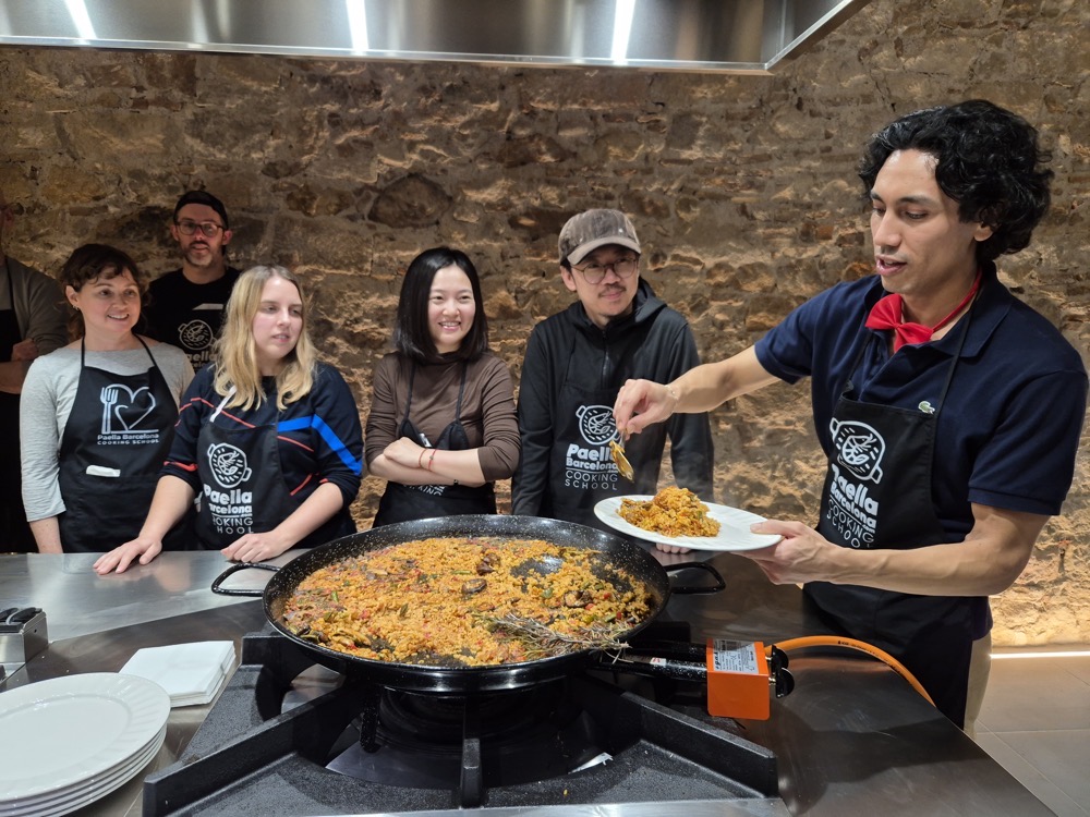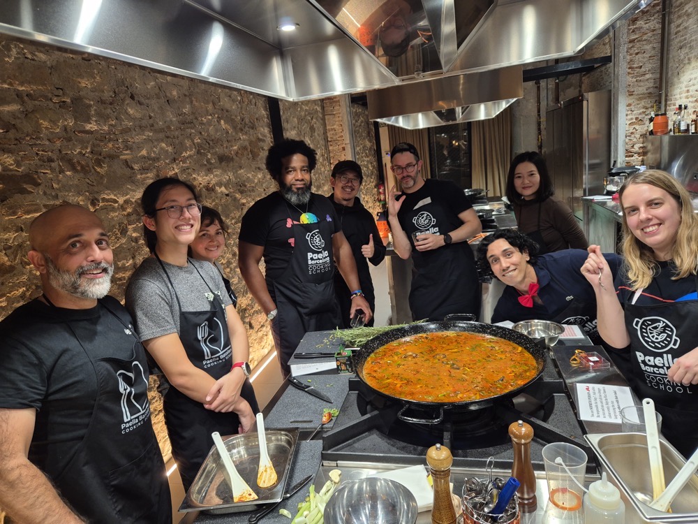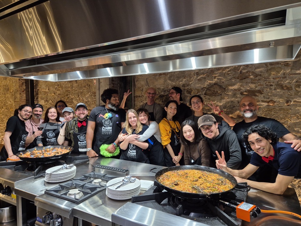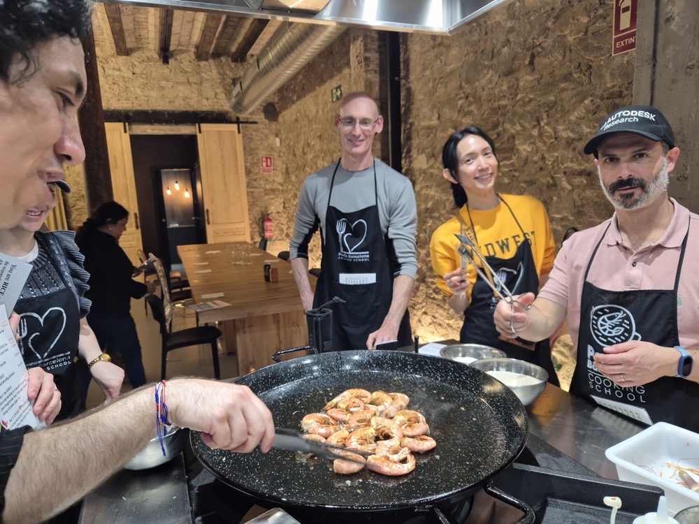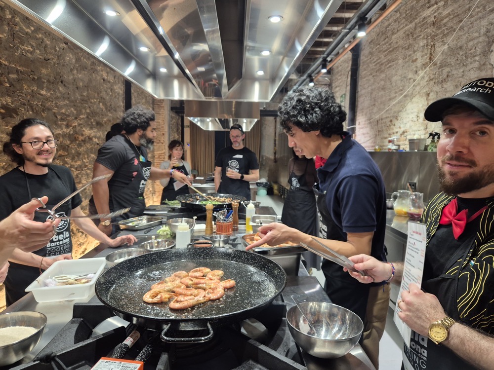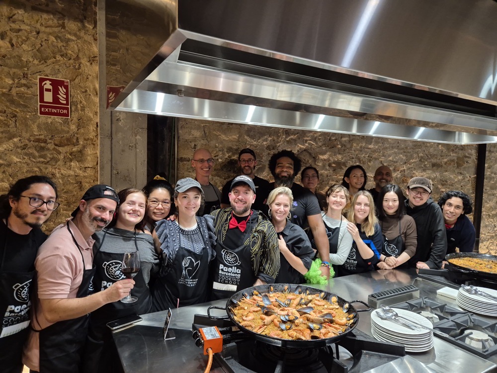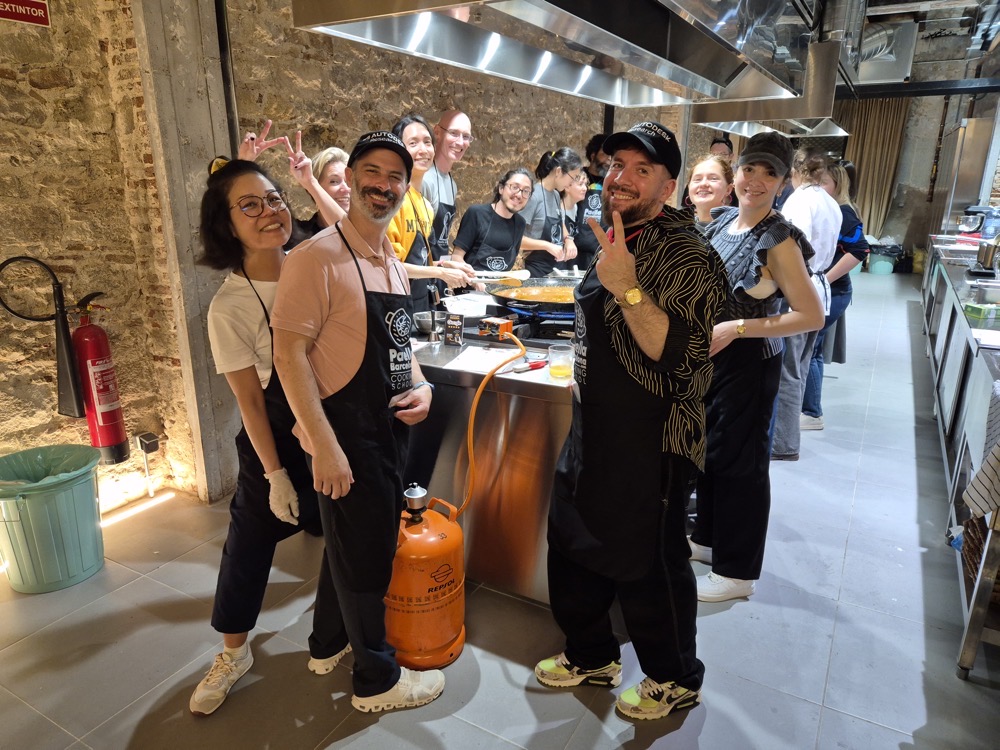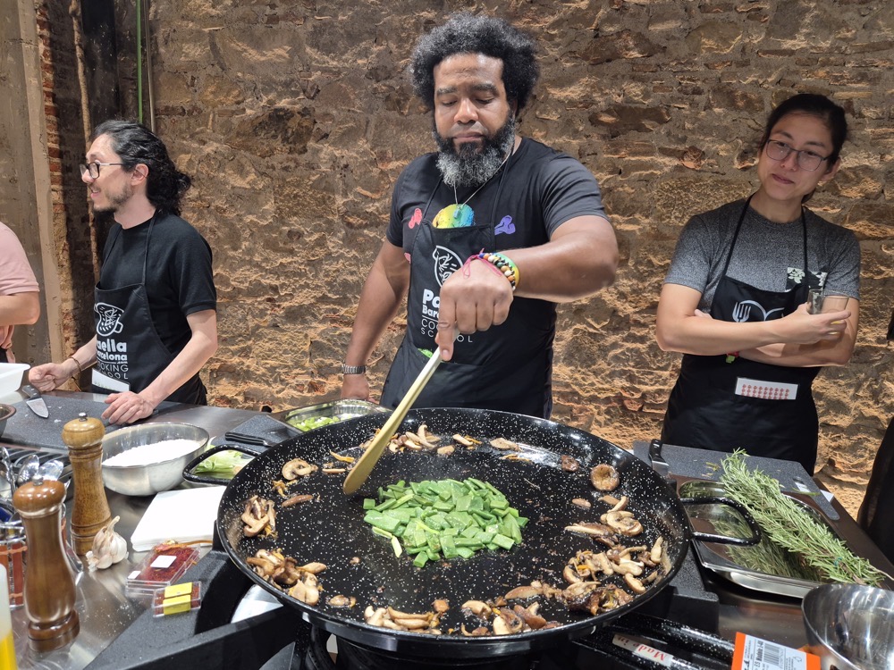 On the evening of the second day, we had a paella-making workshop.We were split into two teams, one focused on preparing red wine sangria and seafood paella, the other on cava sangria and vegan paella. Both teams would get to eat and drink whatever they wanted - this was just about the prep. Lorenzo was our captain ("yes, chef!").