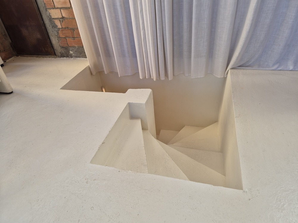 This staircase looks scarier than it is - there's a handrail on the opposite side that you don't see from this angle. Still mildly scary, I will say.